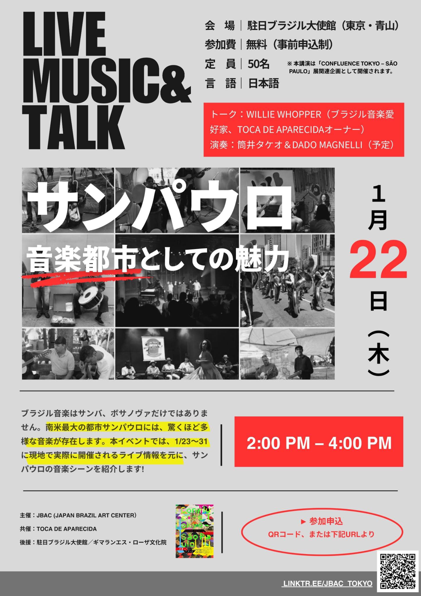 新年初ライブは大使館でのイベントです!サンパウロにちなんだレアな選曲で演奏予定、ウィリーさんの音楽講義にダドさんのサックスも楽しみです♪ お気軽にご参加ください。
